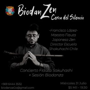 @FranciscoLópez , maestro de flauta Zen y director de la Escuela Shakuhachi Chile, ofrecerá un concierto, con abordajes sobre las piezas interpretadas mediante la meditación.